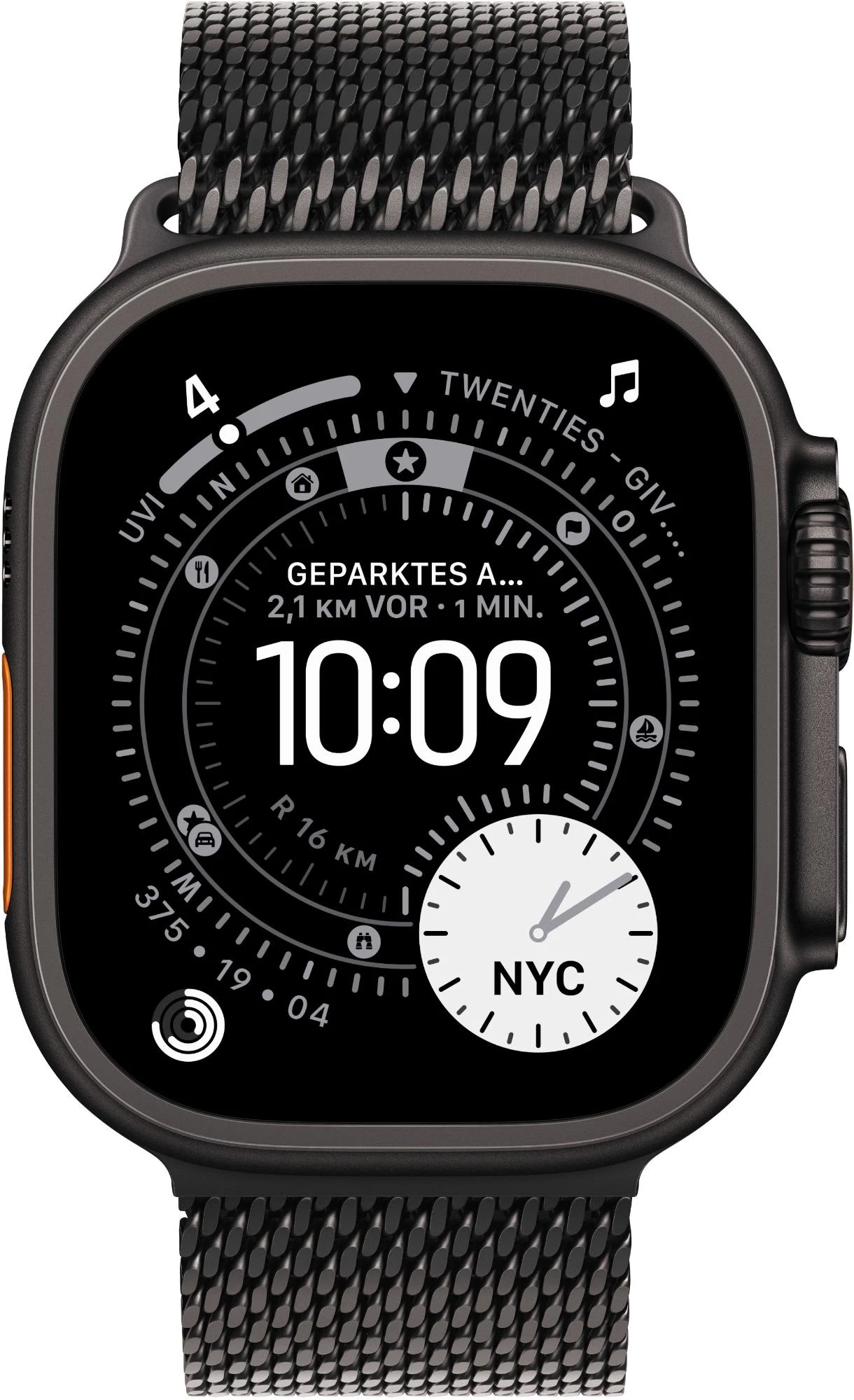 Apple Watch Ultra 3 Titan 49 mm GPS + Cellular (Milanaise Titan Schwarz Large) Schwarz