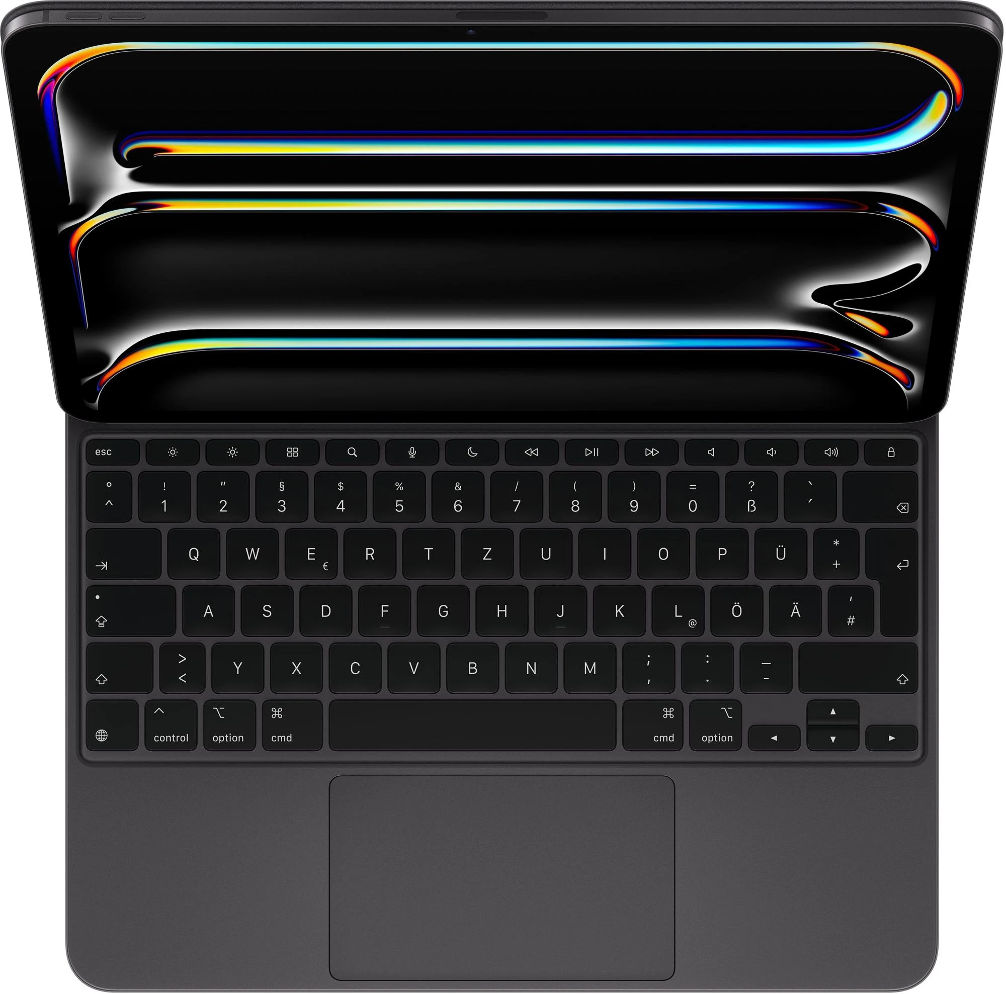 Das Magic Keyboard ist der perfekte Begleiter für das iPad Air. Es hat ein schlankes, mobiles Design und sorgt für ein angenehmes Tippen. Und du hast ein Trackpad, um ganz präzise zu arbeiten. Die Tastatur hat eine Reihe mit 14 Funktionstasten, einen USB‑C Anschluss zum Pass‑Through Laden sowie einen Schutz für die Vorder‑ und Rückseite deines iPad. Das freischwebende Design lässt sich stufenlos an mehrere Betrachtungswinkel anpassen und ein großes Trackpad aus Glas gibt dir neue Möglichkeiten, mit iPadOS zu arbeiten.