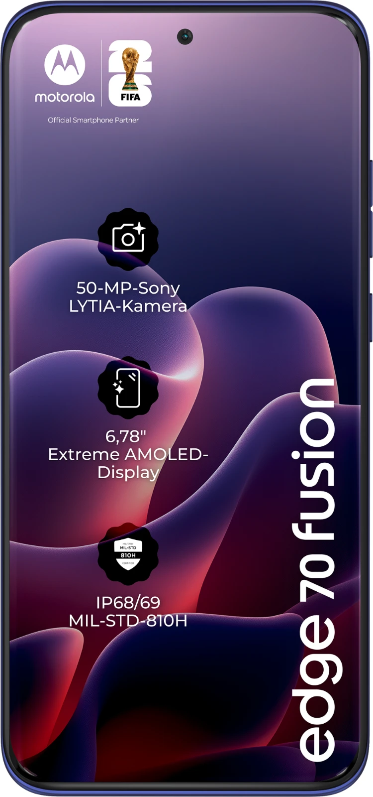 Das motorola edge 70 fusion hebt die wichtigsten Dinge auf ein ganz neues Level. Das makellose Quad-Curved-Design schafft einen eleganten, raffinierten Look und eine natürlich luxuriöse Haptik. Und trotz seines flachen, eleganten Designs ist es vollgepackt mit Funktionen. Kameras auf Profi-Niveau für jede Aufnahme, angefangen beim Sony LYTIA 710-Sensor. Ein intelligenterer Assistent in der Tasche, der alltägliche Aufgaben leichter macht. Und eine lange Akkulaufzeit mit blitzschneller TurboPower-Aufladung. Du gehst gerne auf Entdeckungstouren? Mit Widerstandsfähigkeit nach Militärstandard und Unterwasserschutz kannst du sorglos losziehen. Und all das plus ein 6,78-Zoll-Super-HD-Display mit Pantone Validated-Farben und Hauttönen, unschlagbare Snapdragon-Leistung und jede Menge Speicherplatz für deine Inhalte und Kreationen. Das neue motorola edge 70 fusion ist einfach perfekt.