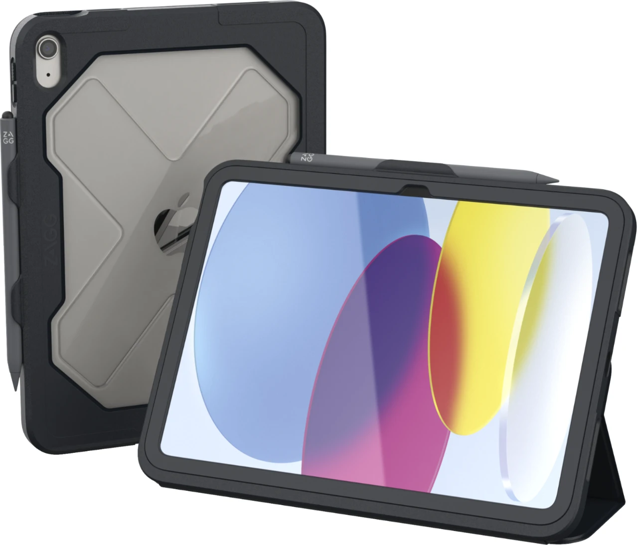 Strapazierfähiges Gehäuse mit Snap-on Displayschutz. Mit dem leichten Gerät können Sie z. B. Videochats führen, Ihre Lieblingsserie verfolgen oder vom Schreibtisch aus arbeiten. Die Abdeckung des Rugged Messenger Case lässt sich zu einem praktischen Ständer umklappen und in drei verschiedenen Winkeln magnetisch befestigen.